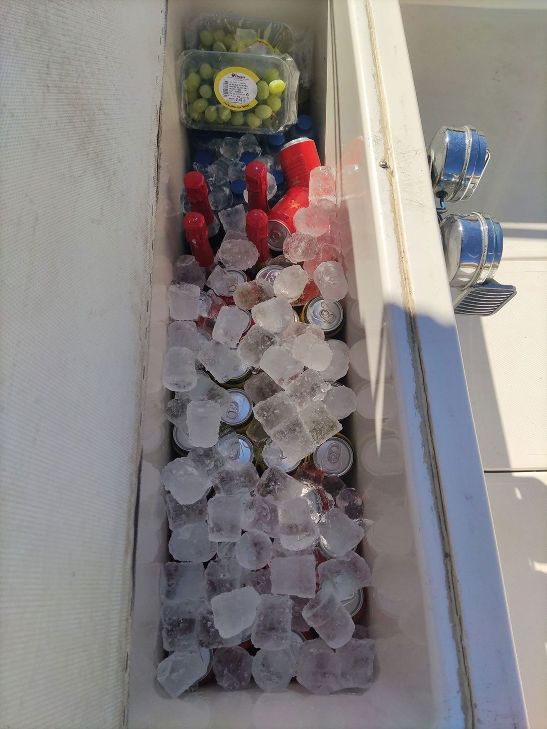 - Getränke: Erfrischungsgetränke, Wasser, Bier, Wein oder Cava und Eis